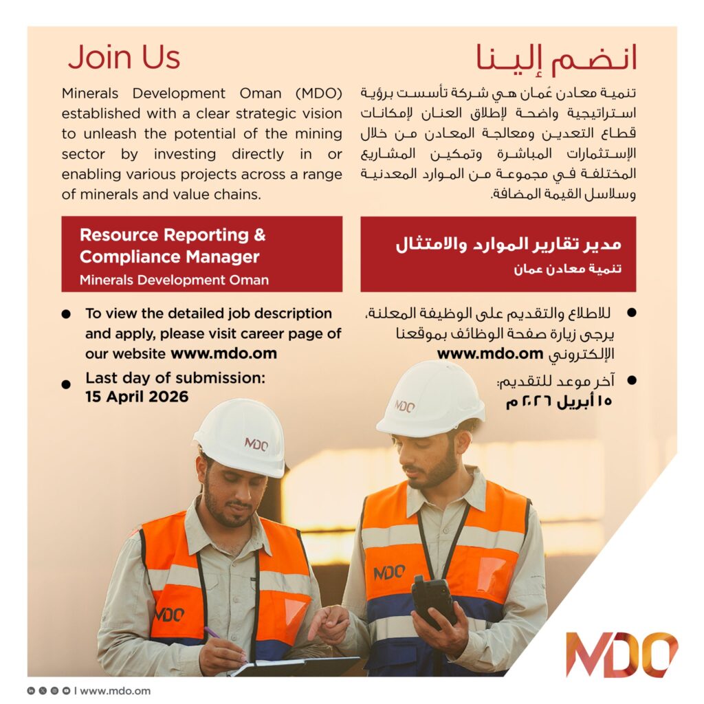 تعد هذه الفرص من أفضل وظائف تنمية معادن عمان التي توفر بيئة عمل احترافية ورواتب تنافسية مما يجعلها خيارًا مثاليًا للباحثين عن وظائف مستقرة في كبرى الشركات العمانية.
