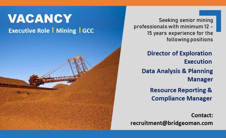 تشمل هذه الفرص مجموعة من وظائف في سلطنة عمان شركات التعدين في دول مجلس التعاون الخليجي حيث تستهدف الكفاءات القيادية الباحثة عن وظائف في عمان برواتب مجزية.